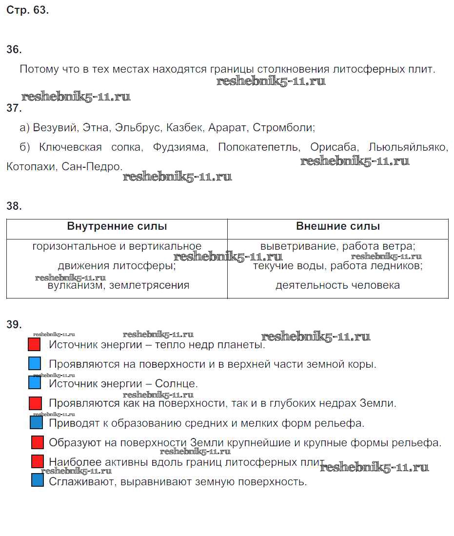 Готовая домашняя работа с ответами по Географии за 5 класс Дронов, Савельева Рабочая тетрадь УМК Дрофа 2016 ФГОС - Страницы 63