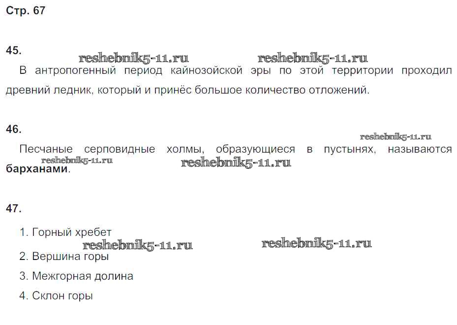 Готовая домашняя работа с ответами по Географии за 5 класс Дронов, Савельева Рабочая тетрадь УМК Дрофа 2016 ФГОС - Страницы 67