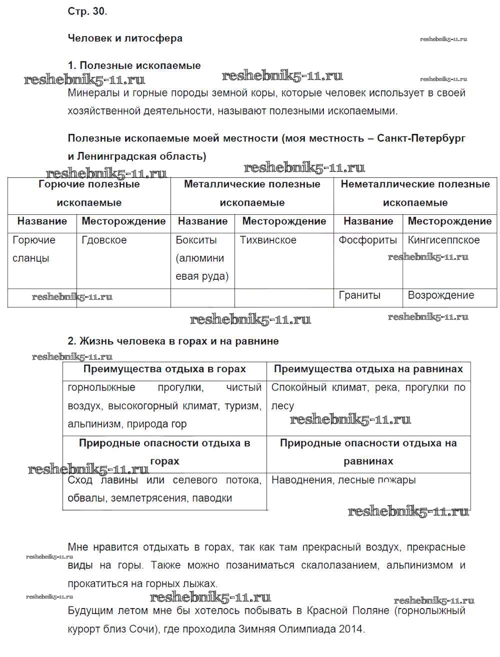 Готовая домашняя работа с ответами по Географии за 5 класс Летягин Рабочая тетрадь Алгоритм успеха Вентана-граф 2020 ФГОС - Страницы 30