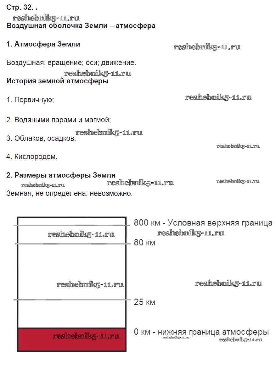 Готовая домашняя работа с ответами по Географии за 5 класс Летягин Рабочая тетрадь Алгоритм успеха Вентана-граф 2020 ФГОС - Страницы 32