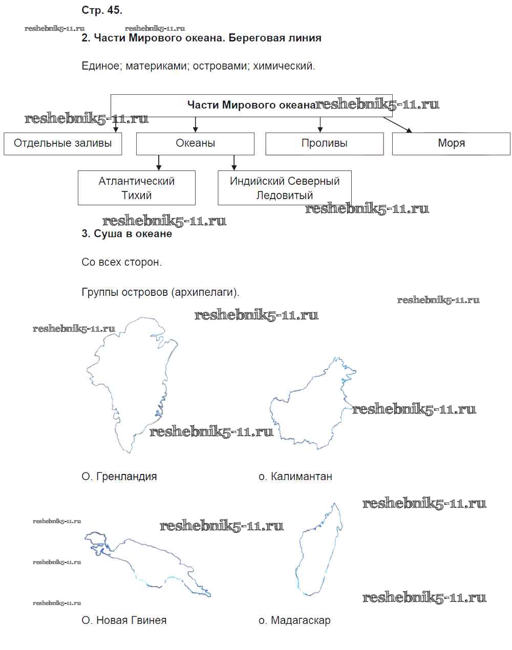 Готовая домашняя работа с ответами по Географии за 5 класс Летягин Рабочая тетрадь Алгоритм успеха Вентана-граф 2020 ФГОС - Страницы 45