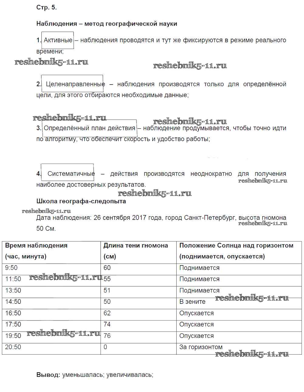 Готовая домашняя работа с ответами по Географии за 5 класс Летягин Рабочая тетрадь Алгоритм успеха Вентана-граф 2020 ФГОС - Страницы 5