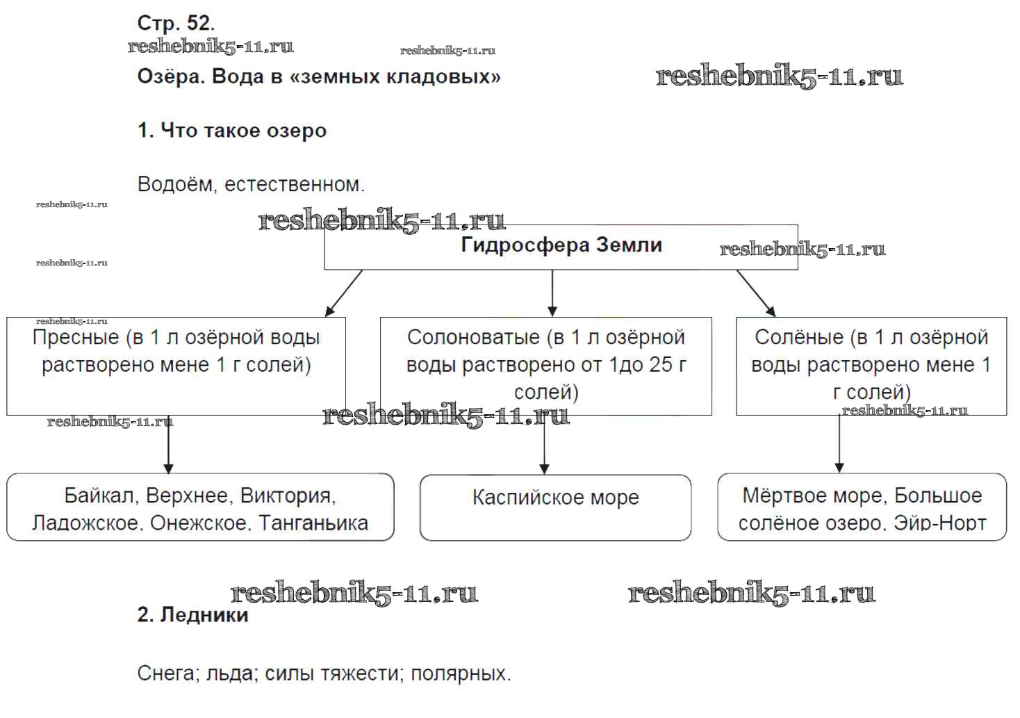 Готовая домашняя работа с ответами по Географии за 5 класс Летягин Рабочая тетрадь Алгоритм успеха Вентана-граф 2020 ФГОС - Страницы 52