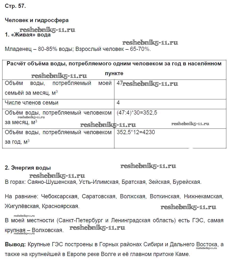 Готовая домашняя работа с ответами по Географии за 5 класс Летягин Рабочая тетрадь Алгоритм успеха Вентана-граф 2020 ФГОС - Страницы 57