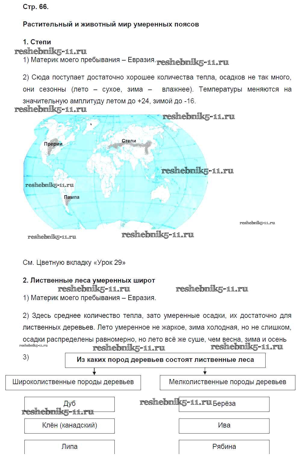 Готовая домашняя работа с ответами по Географии за 5 класс Летягин Рабочая тетрадь Алгоритм успеха Вентана-граф 2020 ФГОС - Страницы 66