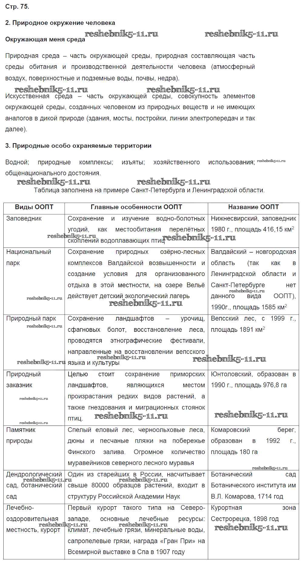 Готовая домашняя работа с ответами по Географии за 5 класс Летягин Рабочая тетрадь Алгоритм успеха Вентана-граф 2020 ФГОС - Страницы 75