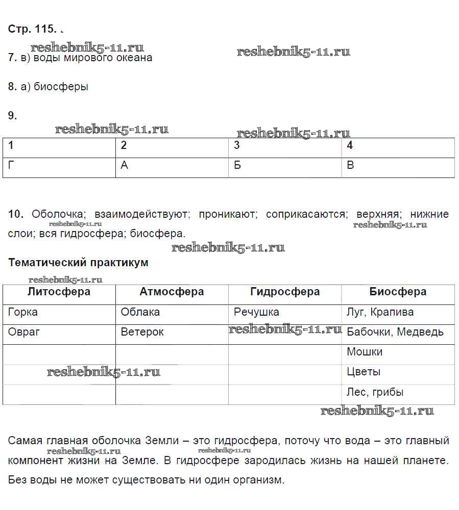 Готовая домашняя работа с ответами по Географии за 5 класс Молодцов Тетрадь-практикум Инновационная школа Русское слово 2015 ФГОС - Страницы 115