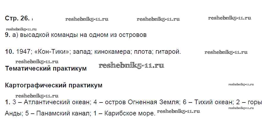 Готовая домашняя работа с ответами по Географии за 5 класс Молодцов Тетрадь-практикум Инновационная школа Русское слово 2015 ФГОС - Страницы 26