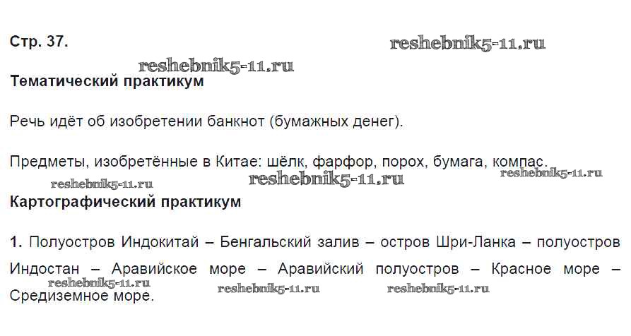 Готовая домашняя работа с ответами по Географии за 5 класс Молодцов Тетрадь-практикум Инновационная школа Русское слово 2015 ФГОС - Страницы 37