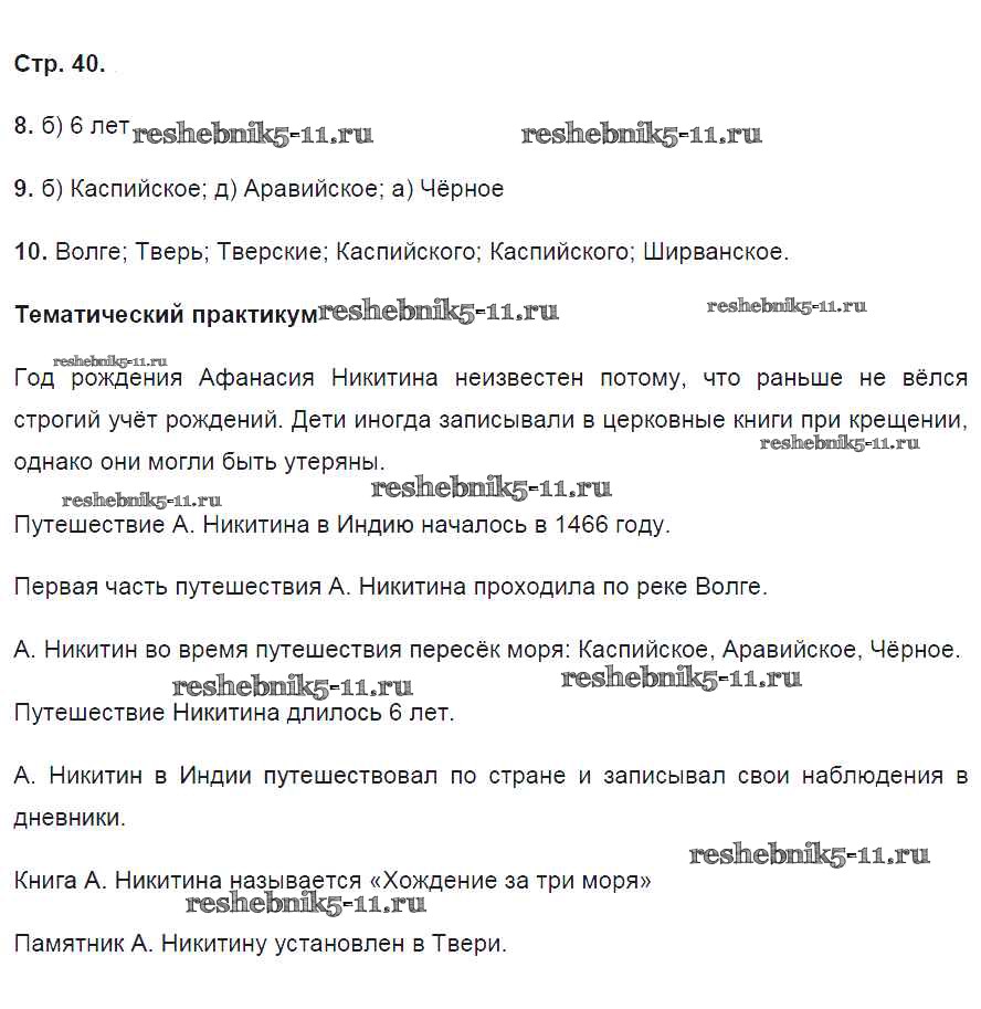 Готовая домашняя работа с ответами по Географии за 5 класс Молодцов Тетрадь-практикум Инновационная школа Русское слово 2015 ФГОС - Страницы 40