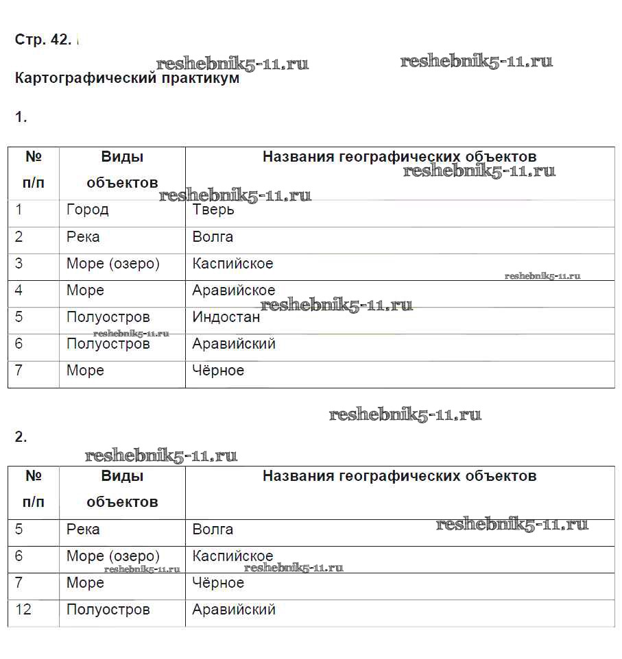 Готовая домашняя работа с ответами по Географии за 5 класс Молодцов Тетрадь-практикум Инновационная школа Русское слово 2015 ФГОС - Страницы 42