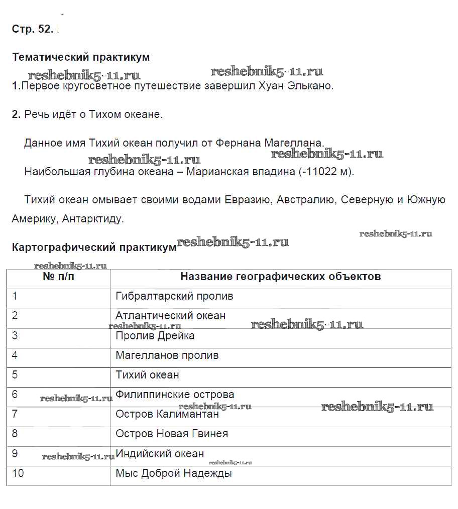 Готовая домашняя работа с ответами по Географии за 5 класс Молодцов Тетрадь-практикум Инновационная школа Русское слово 2015 ФГОС - Страницы 52