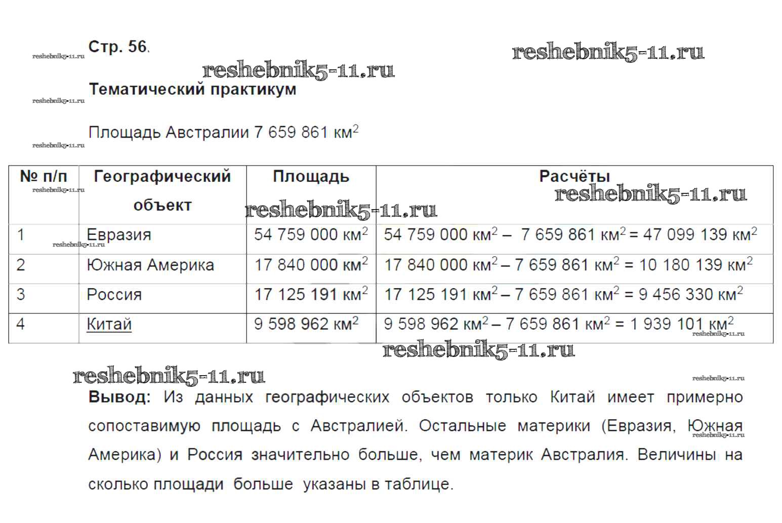 Готовая домашняя работа с ответами по Географии за 5 класс Молодцов Тетрадь-практикум Инновационная школа Русское слово 2015 ФГОС - Страницы 56