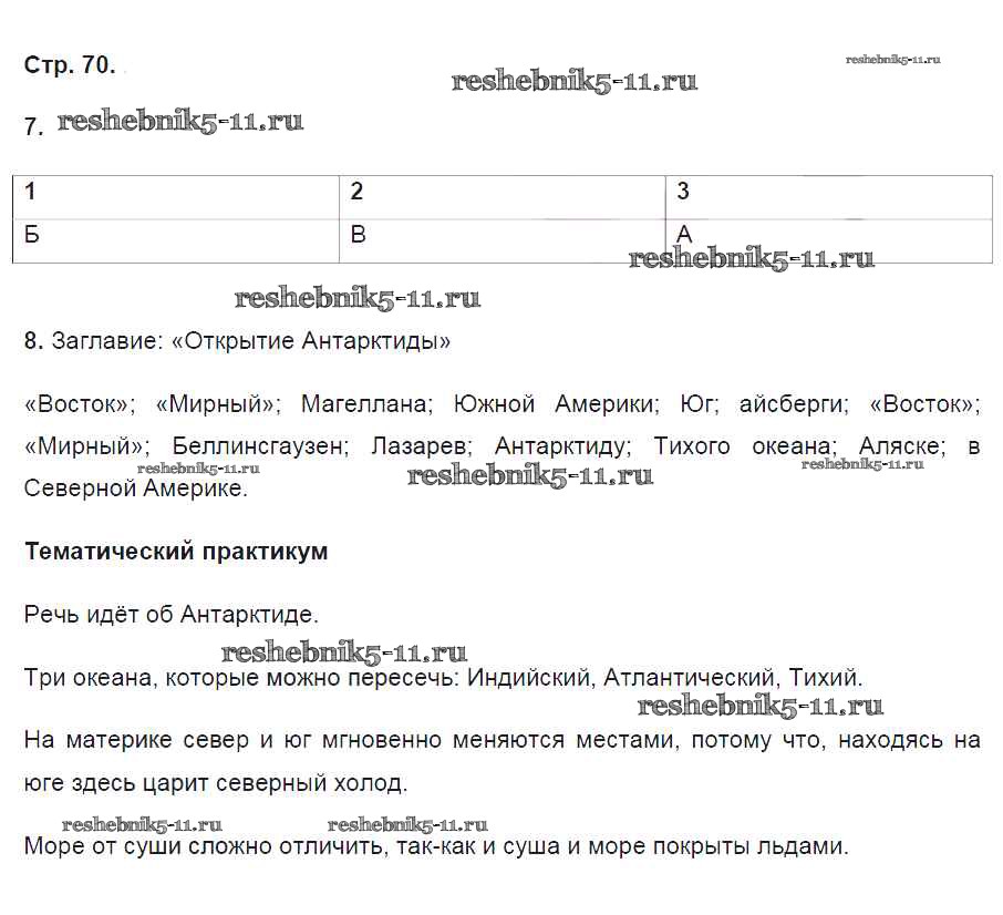 Готовая домашняя работа с ответами по Географии за 5 класс Молодцов Тетрадь-практикум Инновационная школа Русское слово 2015 ФГОС - Страницы 70
