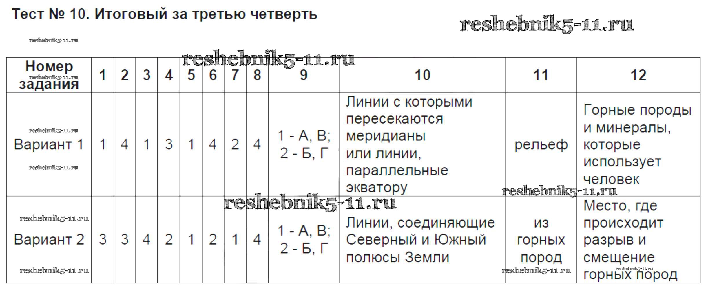 Готовая домашняя работа с ответами по Географии за 5 класс Жижина Контрольно-измерительные материалы (КИМ) ВАКО 2018 ФГОС - Тесты 10
