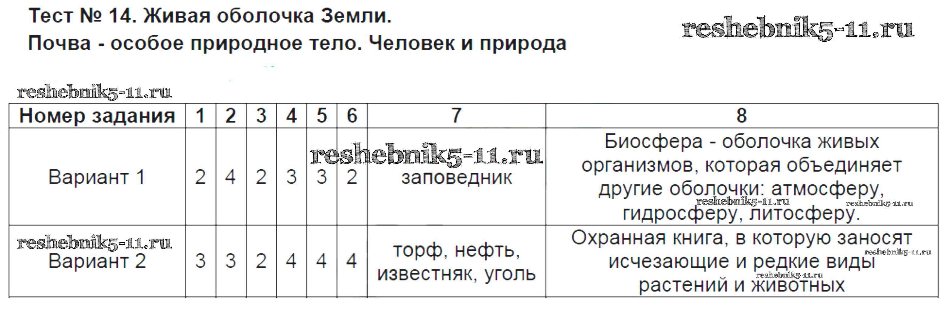 Готовая домашняя работа с ответами по Географии за 5 класс Жижина Контрольно-измерительные материалы (КИМ) ВАКО 2018 ФГОС - Тесты 14
