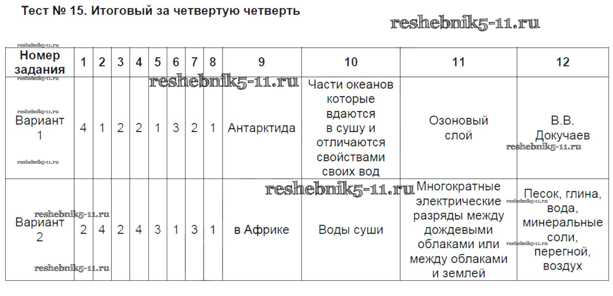 Готовая домашняя работа с ответами по Географии за 5 класс Жижина Контрольно-измерительные материалы (КИМ) ВАКО 2018 ФГОС - Тесты 15