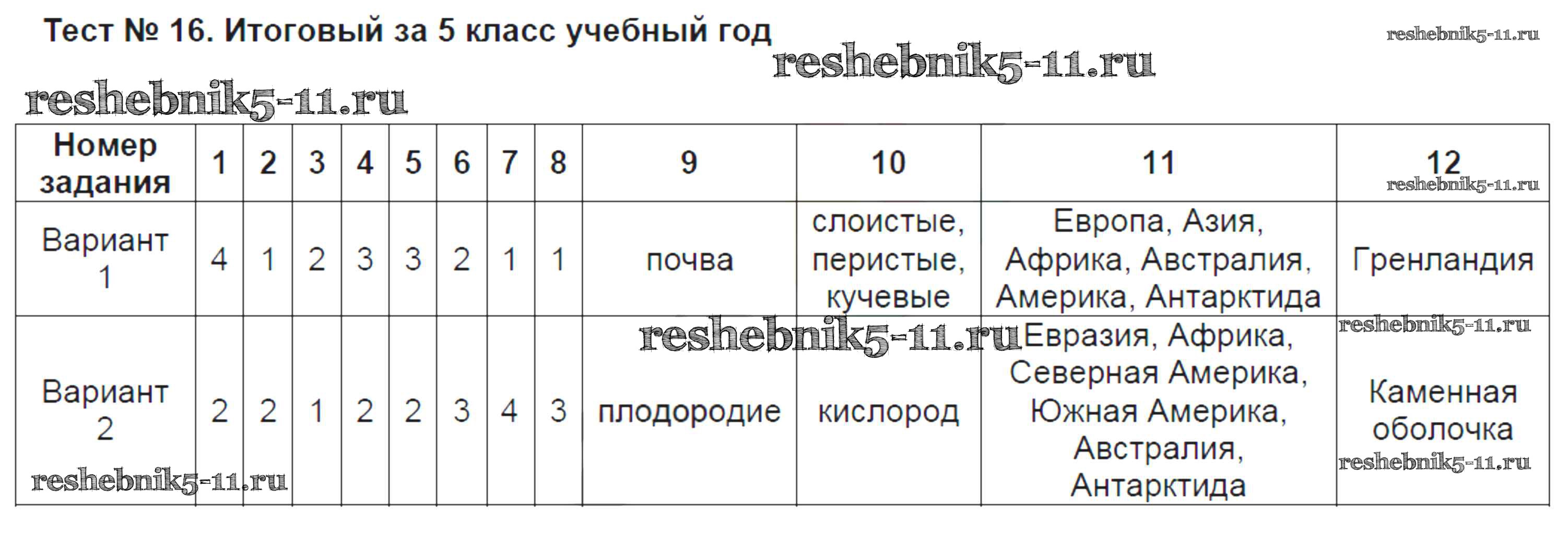 Готовая домашняя работа с ответами по Географии за 5 класс Жижина Контрольно-измерительные материалы (КИМ) ВАКО 2018 ФГОС - Тесты 16