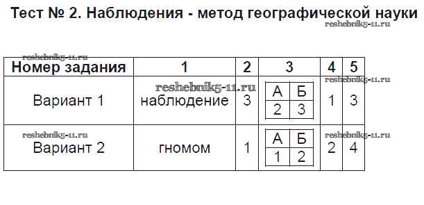 Готовая домашняя работа с ответами по Географии за 5 класс Пятунин, Пятунина Тесты УМК Экзамен 2017 ФГОС - Введение Тест 2