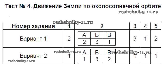 Готовая домашняя работа с ответами по Географии за 5 класс Пятунин, Пятунина Тесты УМК Экзамен 2017 ФГОС - Земля как планета солнечной системы Тест 4