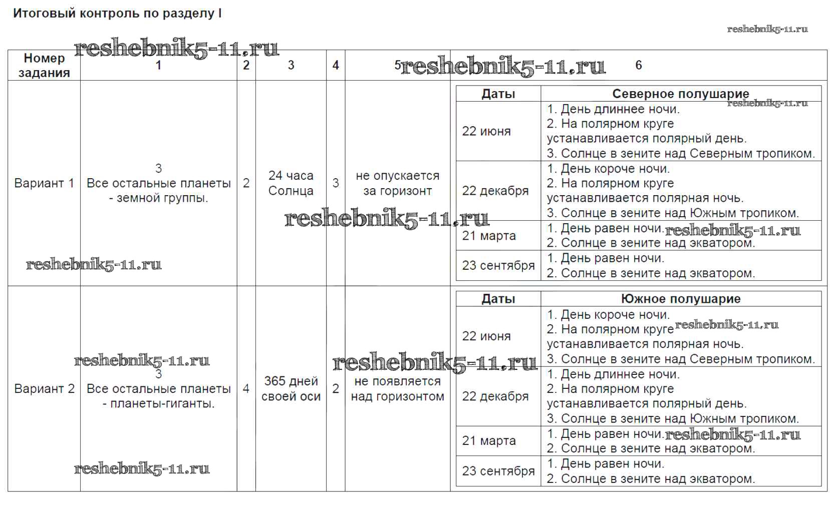 Решебник / земля как планета солнечной системы / итоговый контроль