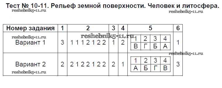 Решебник / внутреннее строение земли / тест 10-11