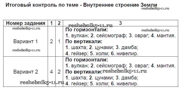 Готовая домашняя работа с ответами по Географии за 5 класс Пятунин, Пятунина Тесты УМК Экзамен 2017 ФГОС - Внутреннее строение земли Итоговый контроль