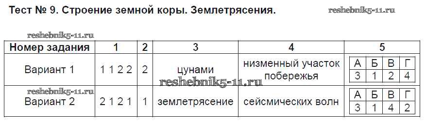 Решебник / внутреннее строение земли / тест 9