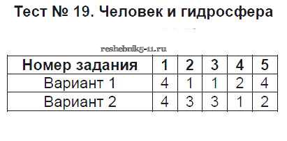 Готовая домашняя работа с ответами по Географии за 5 класс Пятунин, Пятунина Тесты УМК Экзамен 2017 ФГОС - Водная оболочка земли Тест 19
