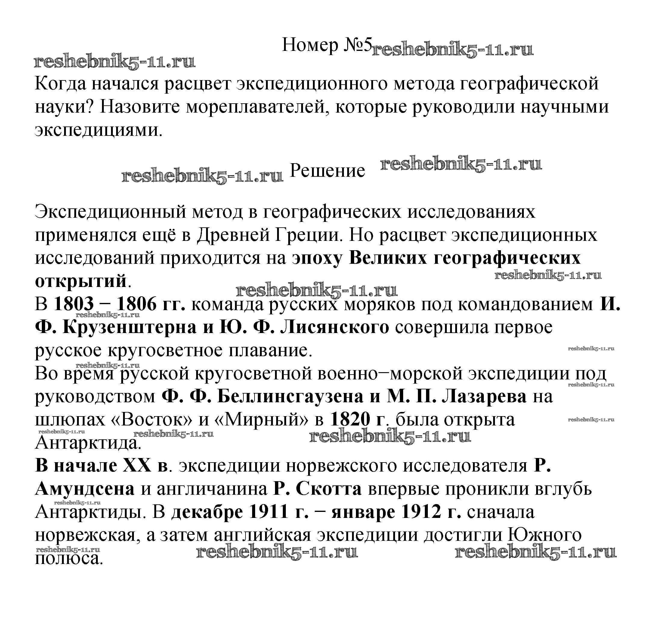 Готовая домашняя работа с ответами по Географии за 5 класс Летягин Учебник Просвещение 2021 ФГОС - Вопросы и задания 5