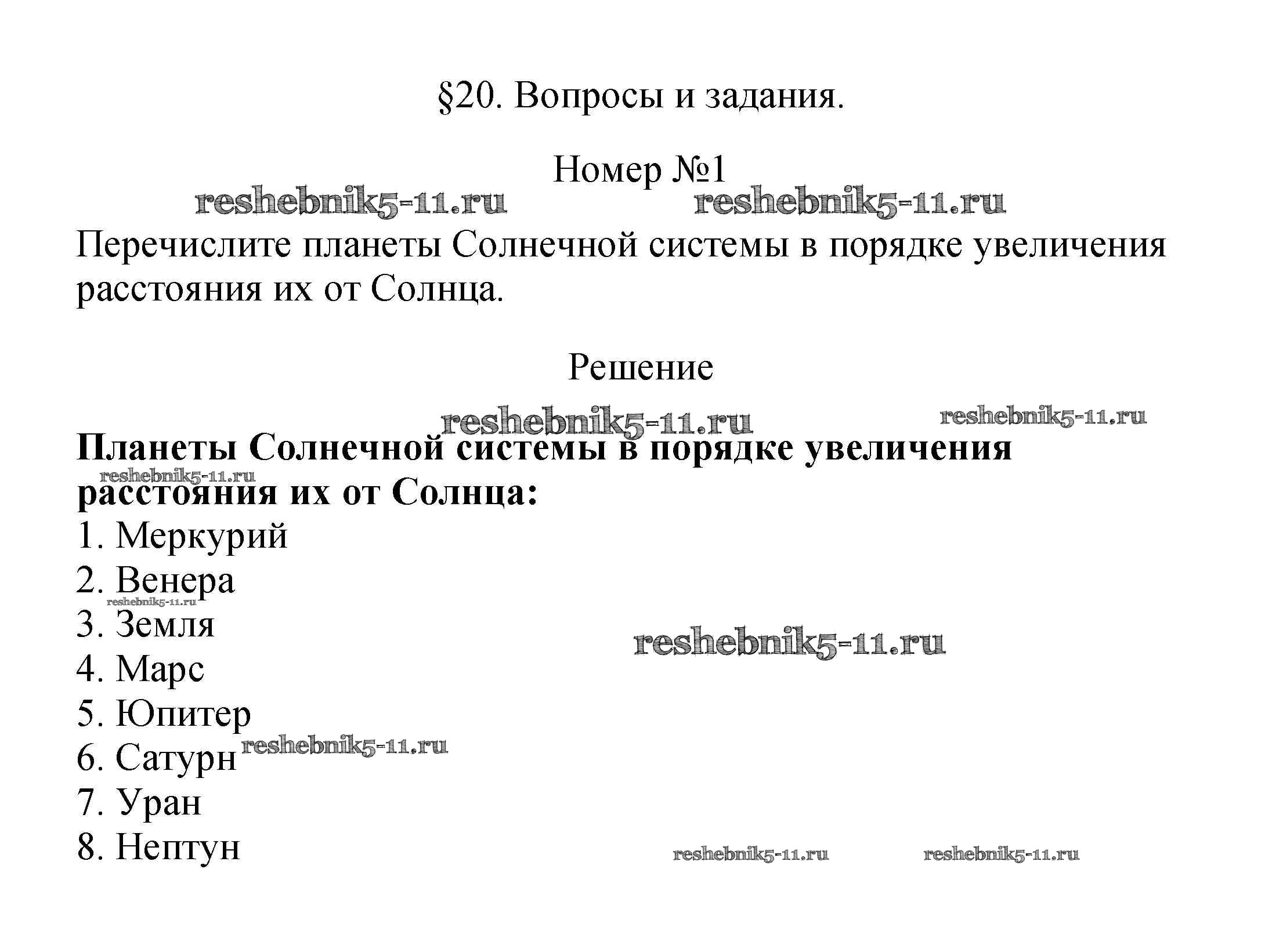 §20. Земля среди других планет Солнечной системы