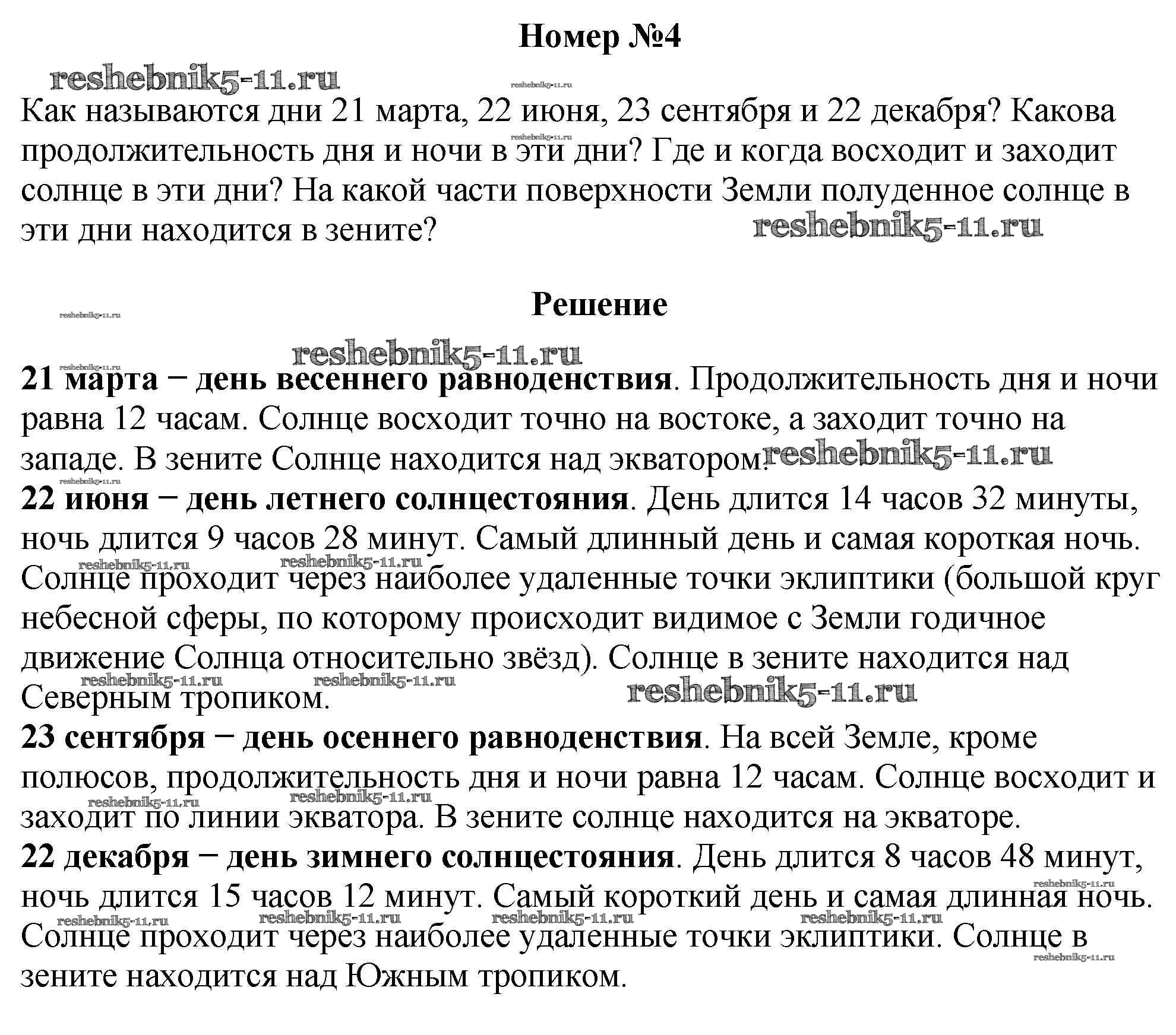 Готовая домашняя работа с ответами по Географии за 5 класс Летягин Учебник Просвещение 2021 ФГОС - Вопросы и задания 4