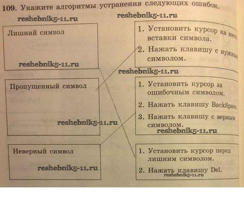 Готовая домашняя работа с ответами по Информатике за 5 класс Босова Рабочая тетрадь Часть 1, 2 Бином 2016 ФГОС - Задания 109