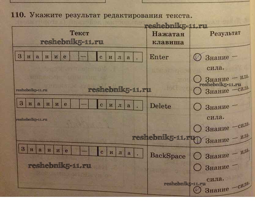 Готовая домашняя работа с ответами по Информатике за 5 класс Босова Рабочая тетрадь Часть 1, 2 Бином 2016 ФГОС - Задания 110