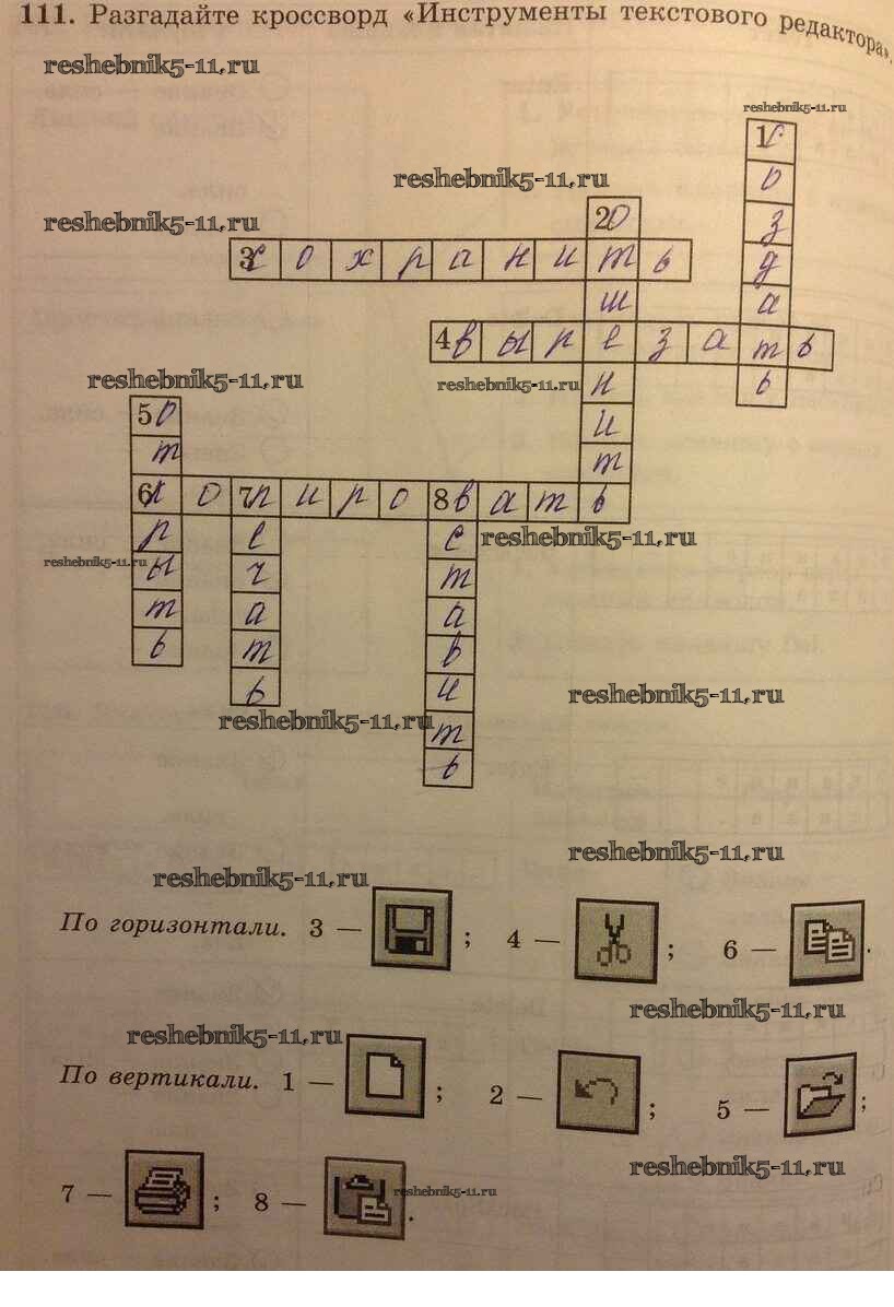 Готовая домашняя работа с ответами по Информатике за 5 класс Босова Рабочая тетрадь Часть 1, 2 Бином 2016 ФГОС - Задания 111