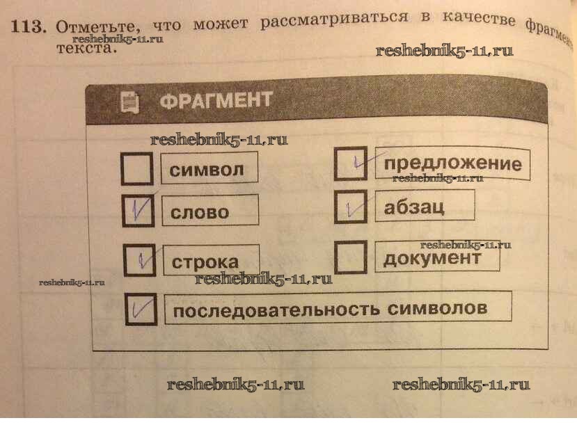 Готовая домашняя работа с ответами по Информатике за 5 класс Босова Рабочая тетрадь Часть 1, 2 Бином 2016 ФГОС - Задания 113