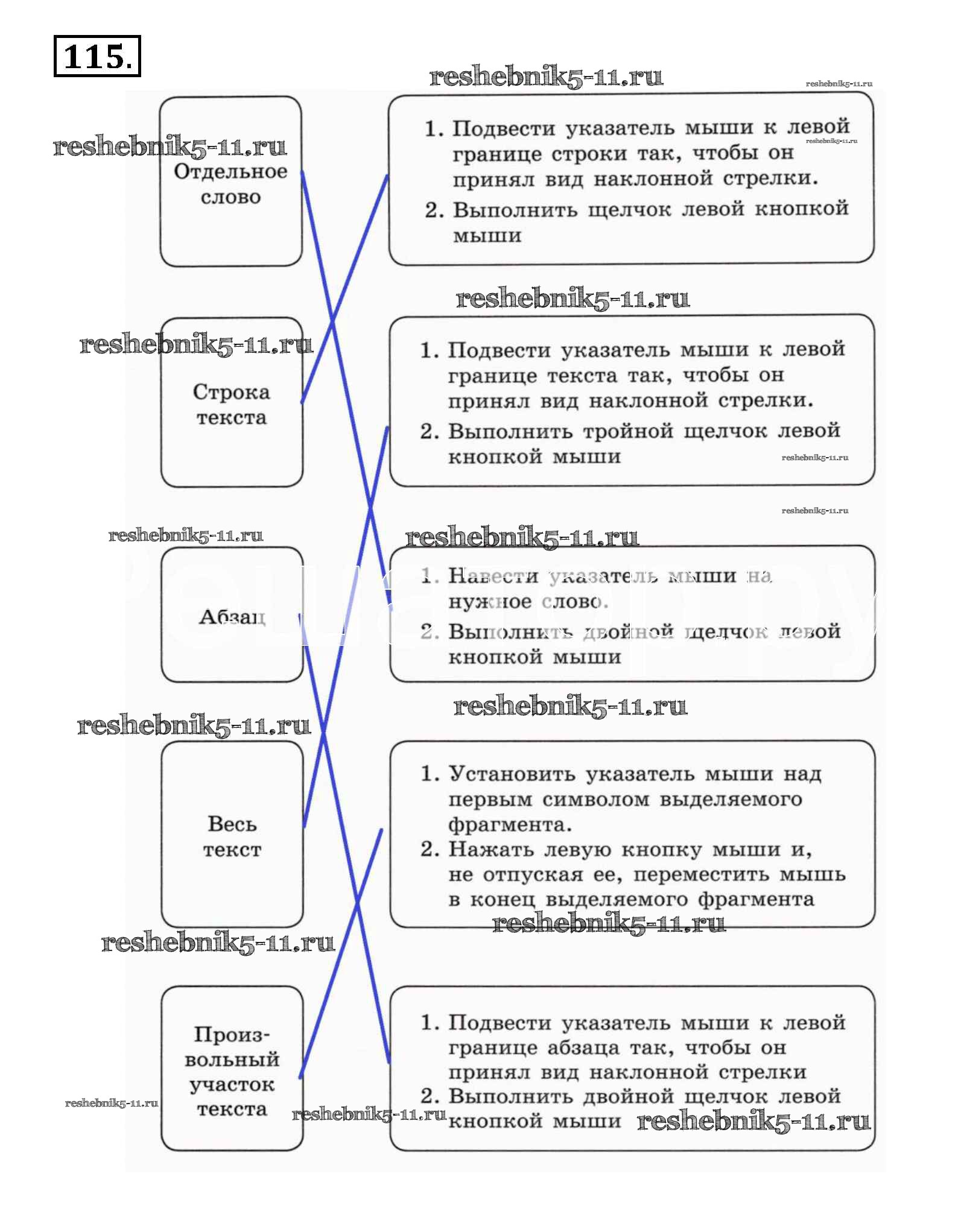 Готовая домашняя работа с ответами по Информатике за 5 класс Босова Рабочая тетрадь Часть 1, 2 Бином 2016 ФГОС - Задания 115