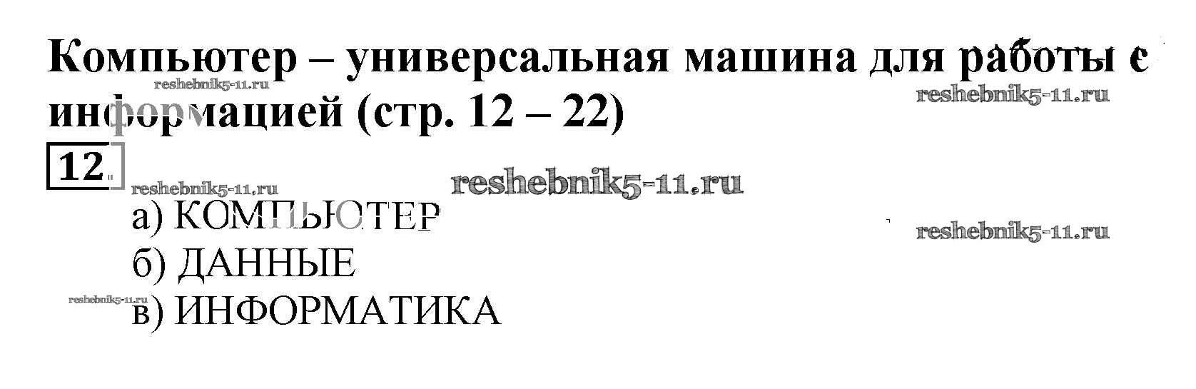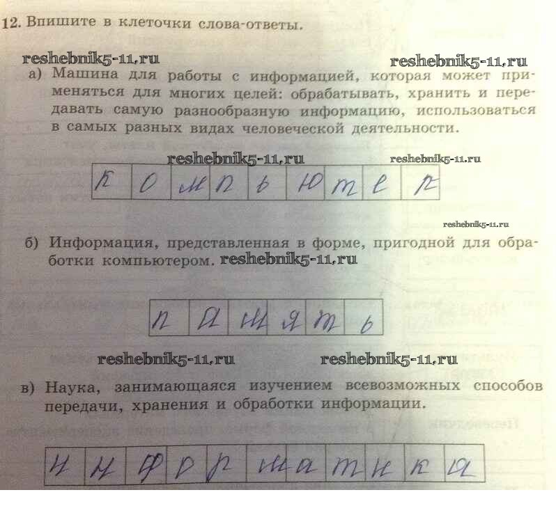 Готовая домашняя работа с ответами по Информатике за 5 класс Босова Рабочая тетрадь Часть 1, 2 Бином 2016 ФГОС - Задания 12
