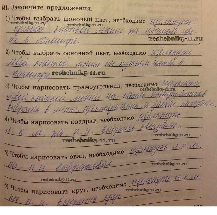 Готовая домашняя работа с ответами по Информатике за 5 класс Босова Рабочая тетрадь Часть 1, 2 Бином 2016 ФГОС - Задания 141