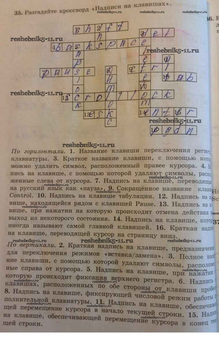 Готовая домашняя работа с ответами по Информатике за 5 класс Босова Рабочая тетрадь Часть 1, 2 Бином 2016 ФГОС - Задания 35