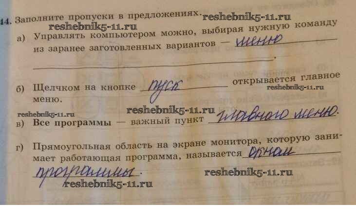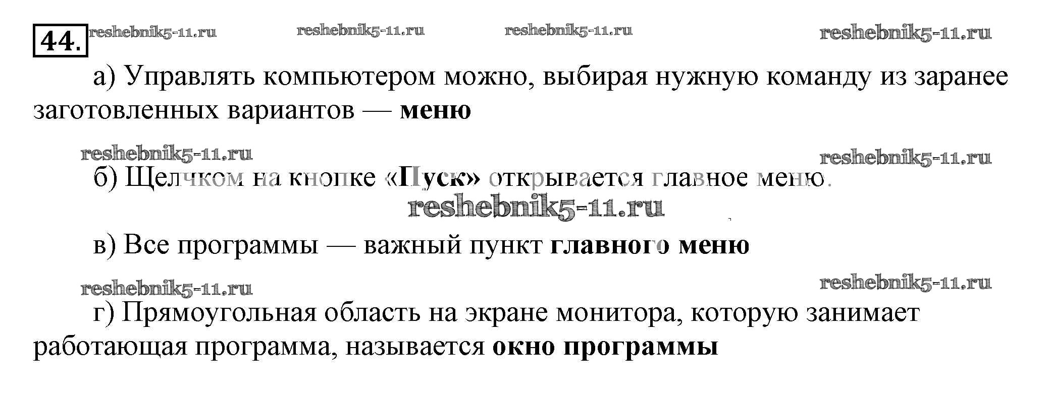 Готовая домашняя работа с ответами по Информатике за 5 класс Босова Рабочая тетрадь Часть 1, 2 Бином 2016 ФГОС - Задания 44