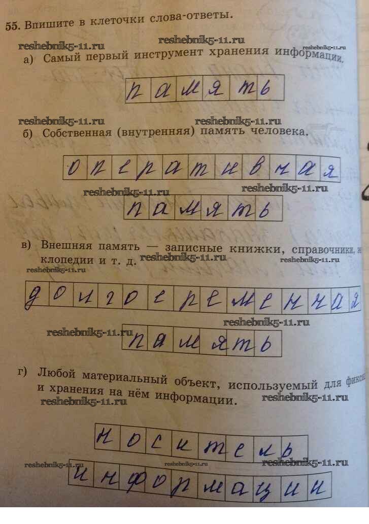 Готовая домашняя работа с ответами по Информатике за 5 класс Босова Рабочая тетрадь Часть 1, 2 Бином 2016 ФГОС - Задания 55