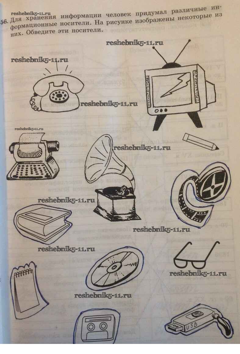 Готовая домашняя работа с ответами по Информатике за 5 класс Босова Рабочая тетрадь Часть 1, 2 Бином 2016 ФГОС - Задания 56