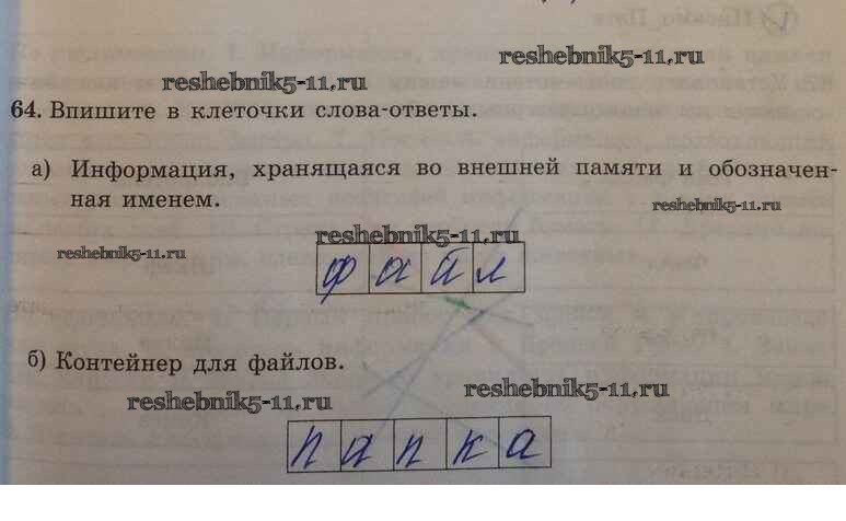 Готовая домашняя работа с ответами по Информатике за 5 класс Босова Рабочая тетрадь Часть 1, 2 Бином 2016 ФГОС - Задания 64