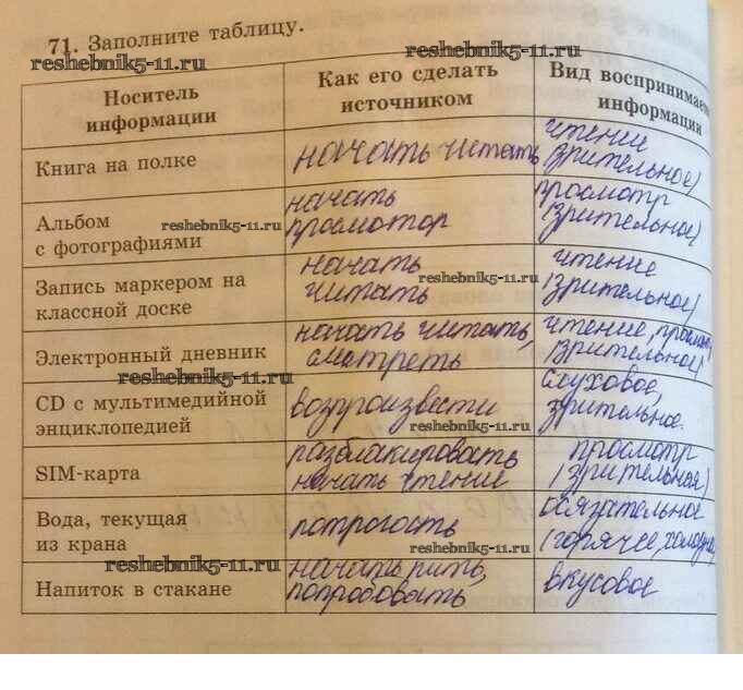 Готовая домашняя работа с ответами по Информатике за 5 класс Босова Рабочая тетрадь Часть 1, 2 Бином 2016 ФГОС - Задания 71