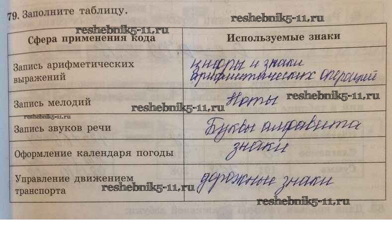 Готовая домашняя работа с ответами по Информатике за 5 класс Босова Рабочая тетрадь Часть 1, 2 Бином 2016 ФГОС - Задания 79