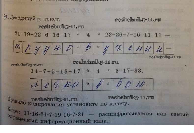 Готовая домашняя работа с ответами по Информатике за 5 класс Босова Рабочая тетрадь Часть 1, 2 Бином 2016 ФГОС - Задания 91