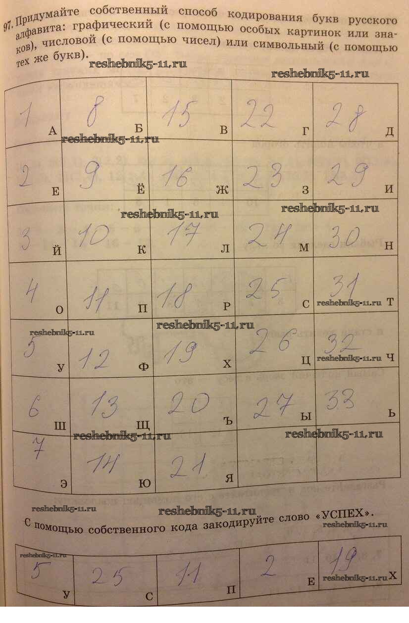 Готовая домашняя работа с ответами по Информатике за 5 класс Босова Рабочая тетрадь Часть 1, 2 Бином 2016 ФГОС - Задания 97