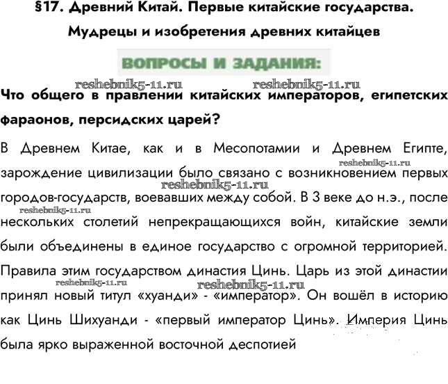 §17. Первые китайские государства. Мудрецы и изобретения древних китайцев