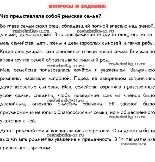 Решебник / римская семья, нравы и религия / вопросы и задания / 1